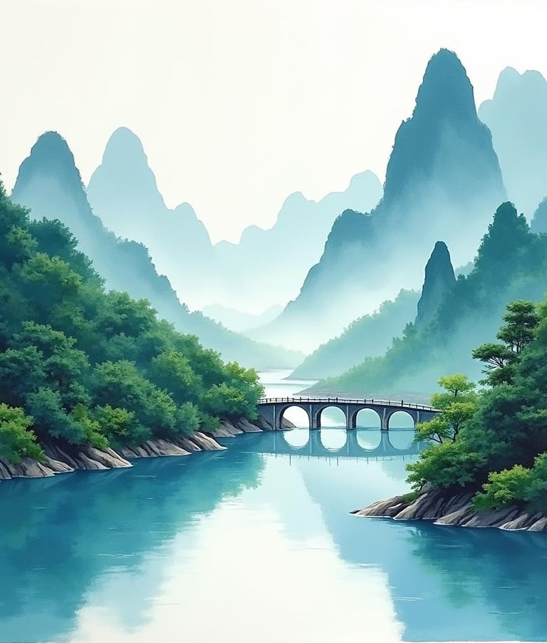 Mountains, rivers, and forests are portrayed with a sense of grandeur and serenity, reflecting the ethos of living in accordance with nature. These landscapes are characterized by their flowing lines and subtle gradients, conveying the breadth and depth of natural landscapes.